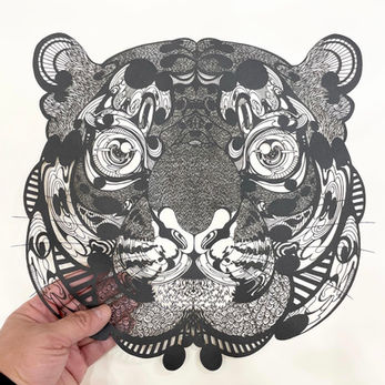 切ることは整えること。そして空間を作ること。テクノロジーの進歩は人間の価値観を揺るがし、日々デジタル化へ目まぐるしく変化する中、我々は生きている。そんなさなかに私は手作業の可能性と価値観を切り絵に感じ、その表現の限りを模索している。温度と動きを持たせた、エネルギッシュな躍動感を自身の作品へ求め、また切り絵特有の影を活かすことにより、空間としての切り絵表現を私は目指している。静のアートから動のアートへ、それこそ私が切り絵に求める今までにない概念である。